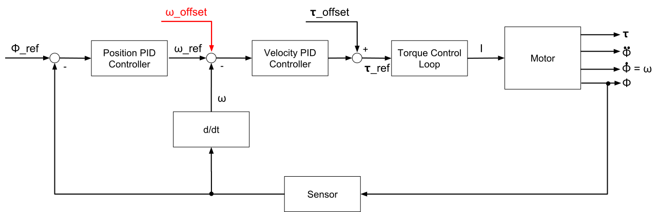 To improve the positioning performance when the position reference is changing dynamically, an additional velocity offset is available in the cascaded controller.