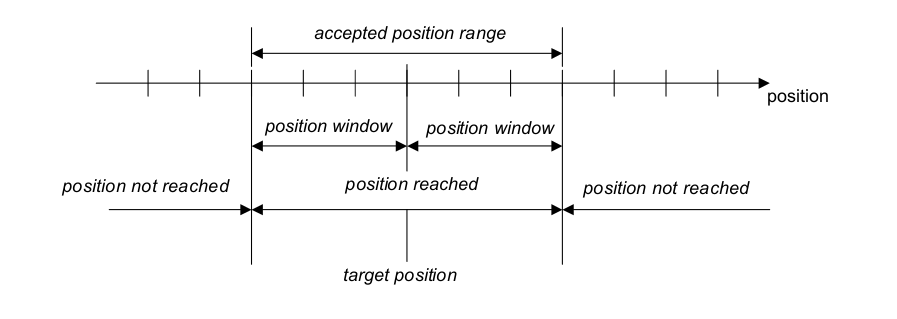 If the actual value is inside of the accepted position range for a configured period of time, the user is informed that the target position has been reached.