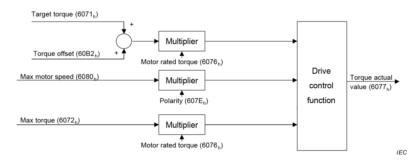 The torque actual value is used as mandatory output to the control device.