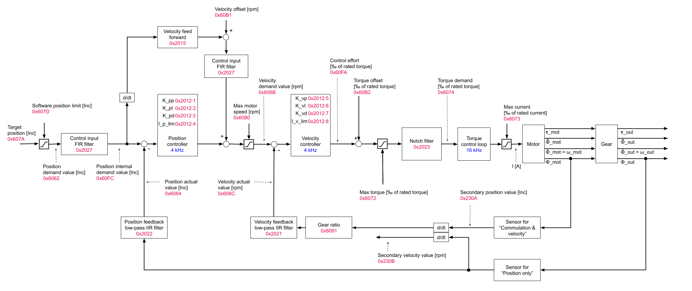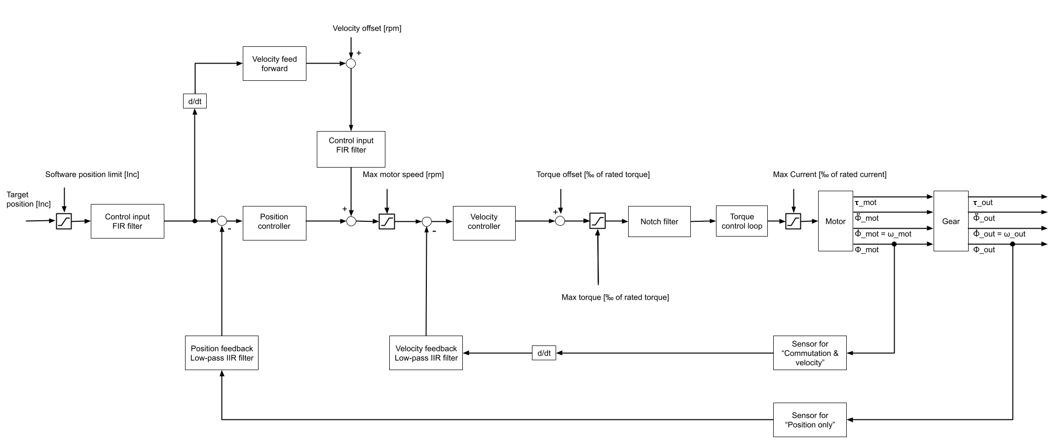 The velocity FIR filter is before velocity feed forward until firmware 4.4.9! Only in the soon-to-be-released firmware 4.4.10 it will be at the shown position.