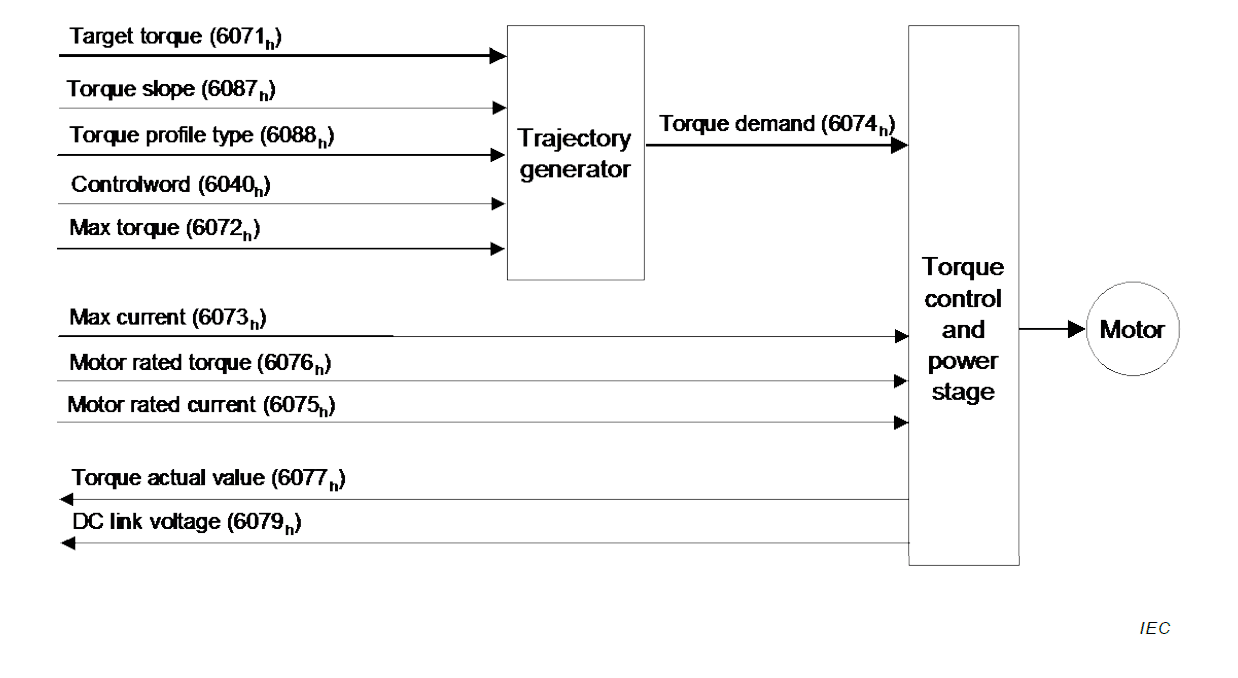 Output of the generator is the torque demand value (0x6074) which is processed by the torque controller.